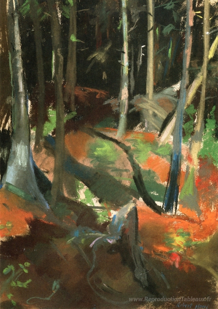 Nous vous proposons une reproduction artisanale sur toile du célèbre tableau 'Monhegan, Maine' de Robert Henri, provenant du Musée de la Reproduction.