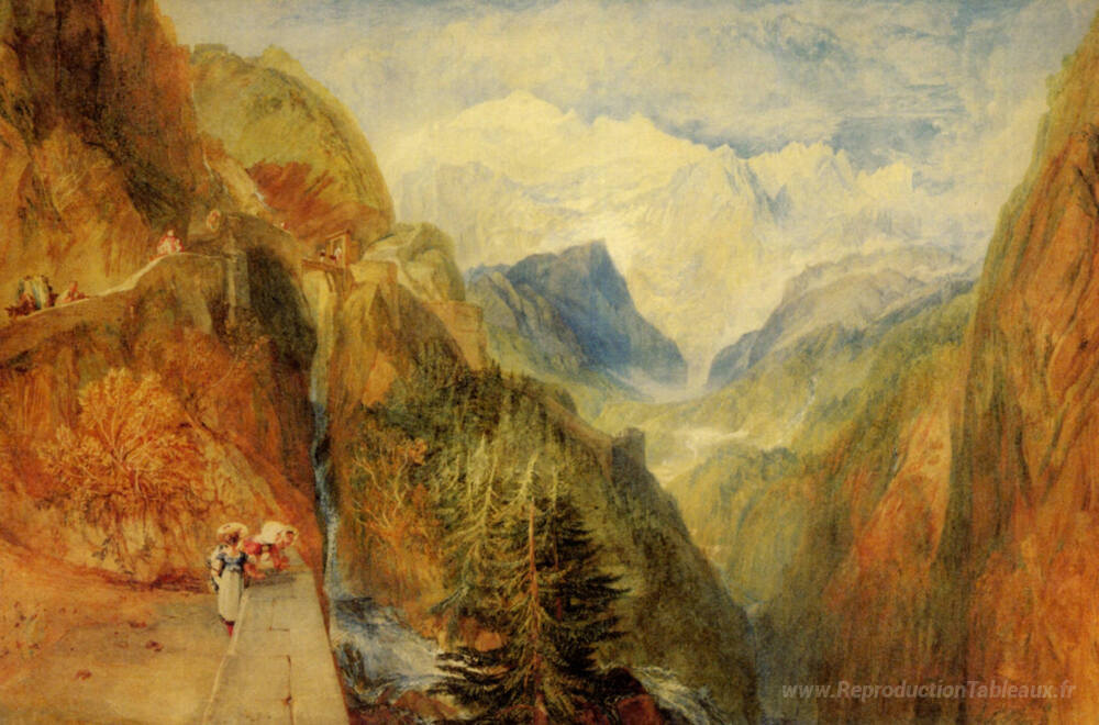 Nous vous proposons une reproduction artisanale sur toile du célèbre tableau 'Mont Blanc de Fort Roch, Val D'Aosta' de William Turner, provenant du Musée de la Reproduction.