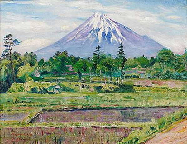 Nous vous proposons une reproduction artisanale sur toile du célèbre tableau 'Mont Fuji' de David Burliuk, provenant du Musée de la Reproduction.