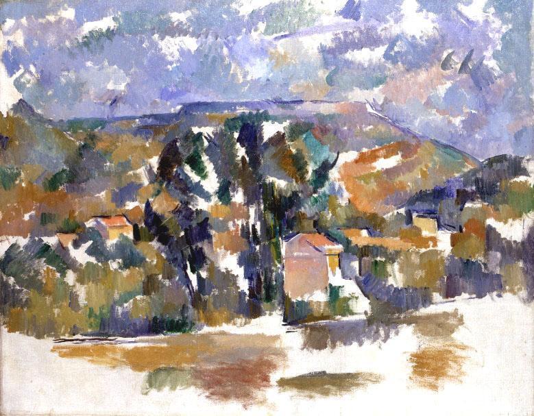 Nous vous proposons une reproduction artisanale sur toile du célèbre tableau 'Mont Sainte-Victoire vu de Les Lauves' de Paul Cezanne, provenant du Musée de la Reproduction.