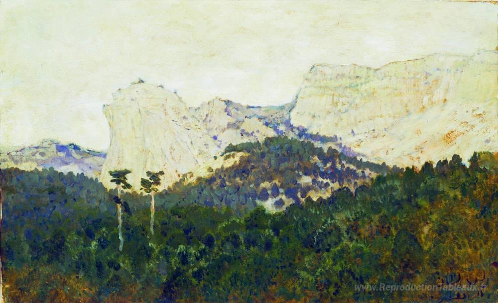 Nous vous proposons une reproduction artisanale sur toile du célèbre tableau 'Montagnes. Crimée.' de Isaac Levitan, provenant du Musée de la Reproduction.