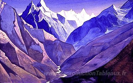 Nous vous proposons une reproduction artisanale sur toile du célèbre tableau 'Montagnes' de Nicholas Roerich, provenant du Musée de la Reproduction.