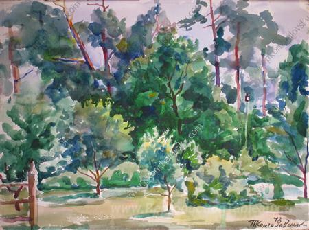 Nous vous proposons une reproduction artisanale sur toile du célèbre tableau 'Monticules. Le parc.' de Pyotr Konchalovsky, provenant du Musée de la Reproduction.
