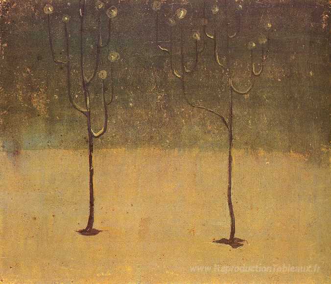 Nous vous proposons une reproduction artisanale sur toile du célèbre tableau 'Motif d'hiver' de Mikalojus Ciurlionis, provenant du Musée de la Reproduction.
