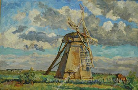 Nous vous proposons une reproduction artisanale sur toile du célèbre tableau 'Moulin à vent' de Pyotr Konchalovsky, provenant du Musée de la Reproduction.