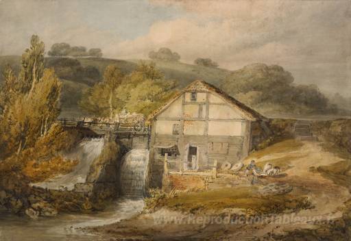 Nous vous proposons une reproduction artisanale sur toile du célèbre tableau 'Moulin de Keyes' de William Turner, provenant du Musée de la Reproduction.