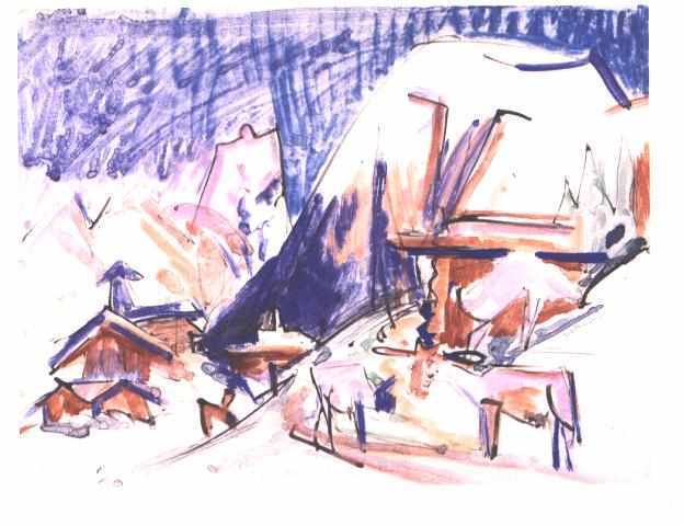 Nous vous proposons une reproduction artisanale sur toile du célèbre tableau 'Neige au staffelalp' de Ernst Ludwig Kirchner, provenant du Musée de la Reproduction.