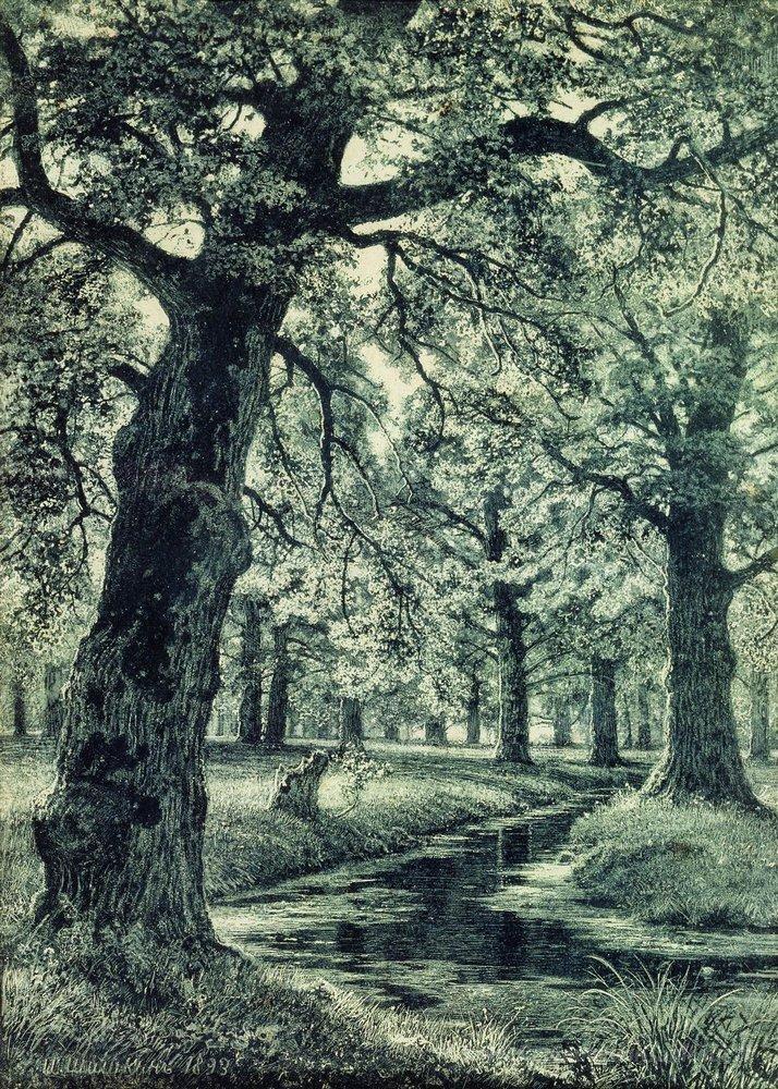 Découvrez l'univers intemporel de la peinture à l'huile à travers l'œuvre emblématique Oak Grove du maître russe Ivan Shishkin. Reconnu pour son habileté à capturer la beauté de la nature, Shishkin associe une technique minutieuse à un sens aigu de l'observation. Ses paysages évoquent une sérénité poignante, invitant le spectateur à s'évader dans des forêts luxuriantes, où la lumière joue subtilement avec les feuillages.