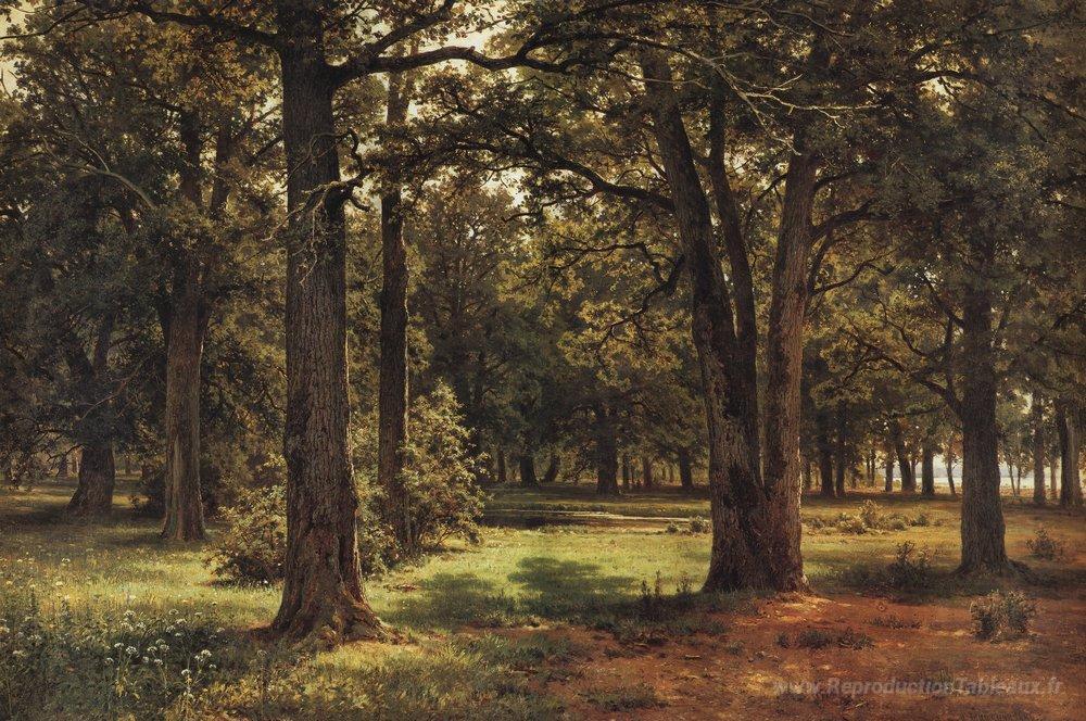 Nous vous proposons une reproduction artisanale sur toile du célèbre tableau 'Oaks de Peter le Grand dans Sesroretsk' de Ivan Shishkin, provenant du Musée de la Reproduction.