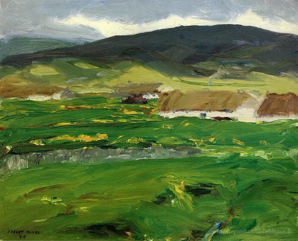 Nous vous proposons une reproduction artisanale sur toile du célèbre tableau 'O'Malley Home (Achill Island, comté de Mayo, Irlande)' de Robert Henri, provenant du Musée de la Reproduction.