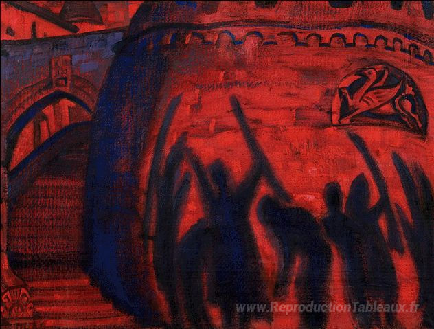 Nous vous proposons une reproduction artisanale sur toile du célèbre tableau 'Ombres' de Nicholas Roerich, provenant du Musée de la Reproduction.