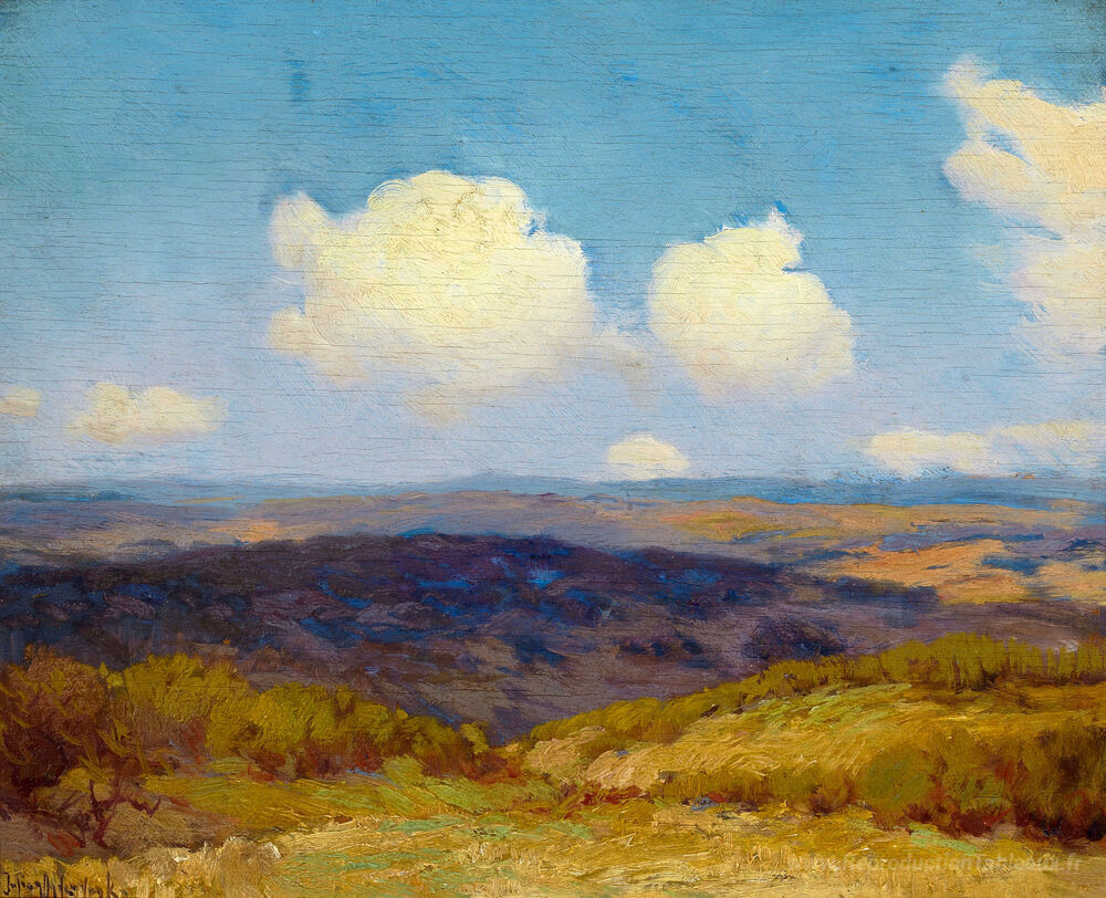Nous vous proposons une reproduction artisanale sur toile du célèbre tableau 'Ombres volantes' de Robert Julian Onderdonk, provenant du Musée de la Reproduction.