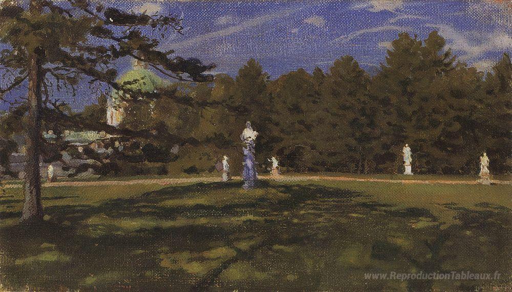 Nous vous proposons une reproduction artisanale sur toile du célèbre tableau 'Oranienbaum' de Konstantin Somov, provenant du Musée de la Reproduction.