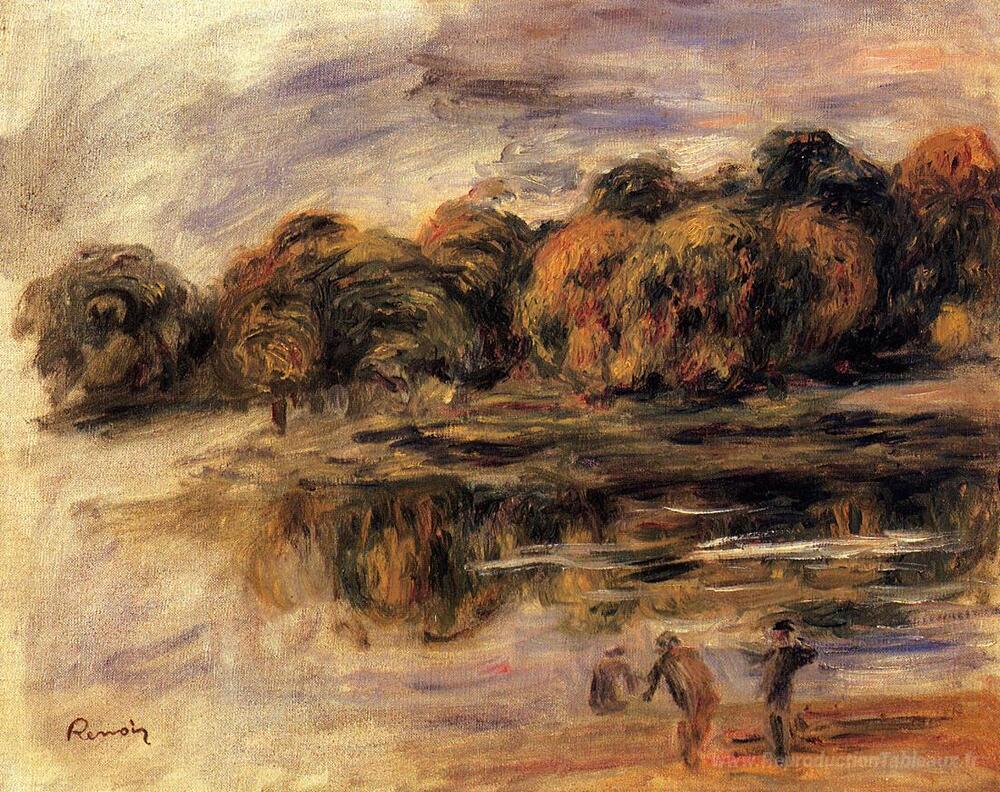 Nous vous proposons une reproduction artisanale sur toile du célèbre tableau 'Pêcheurs par un lac' de Pierre-Auguste Renoir, provenant du Musée de la Reproduction.