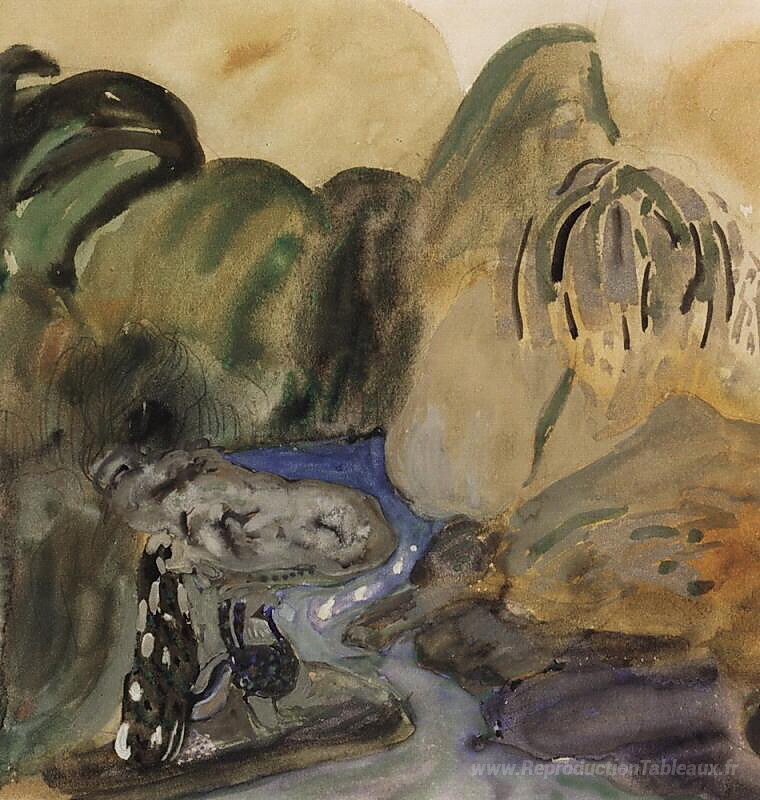 Nous vous proposons une reproduction artisanale sur toile du célèbre tableau 'Par la rivière' de Martiros Saryan, provenant du Musée de la Reproduction.