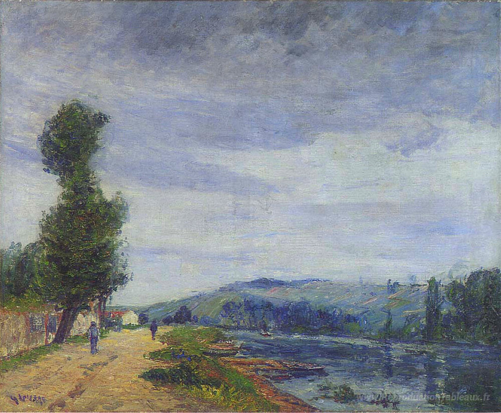 Nous vous proposons une reproduction artisanale sur toile du célèbre tableau 'Par le temps orageux de Seine' de Gustave Loiseau, provenant du Musée de la Reproduction.