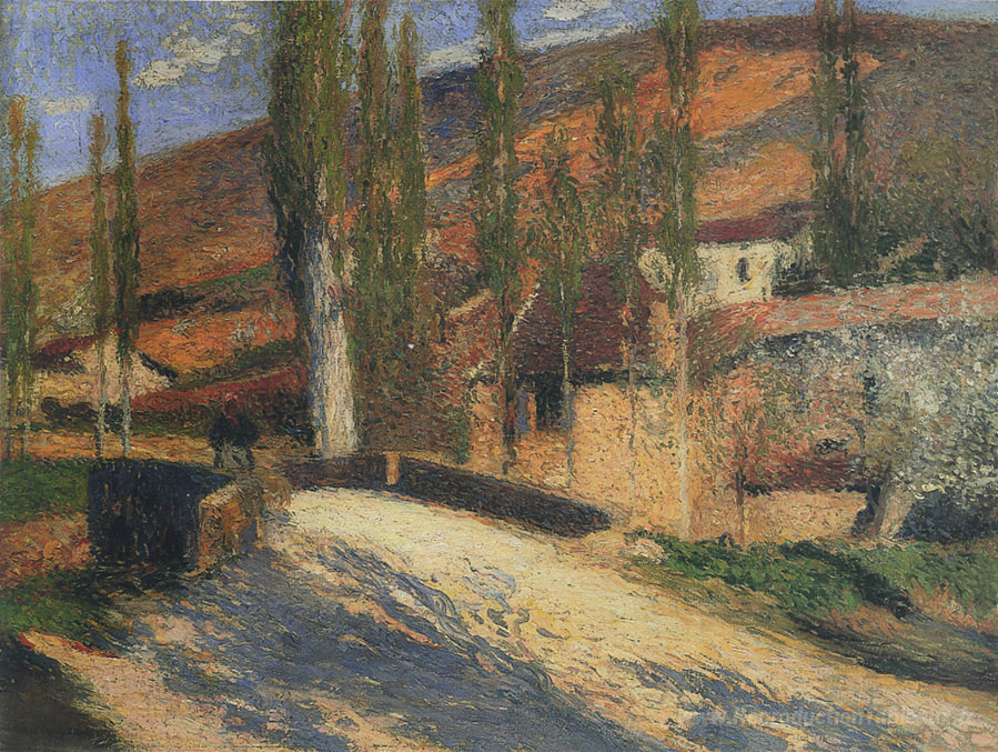 Nous vous proposons une reproduction artisanale sur toile du célèbre tableau 'Partie du pont de Labastide' de Henri Martin, provenant du Musée de la Reproduction.