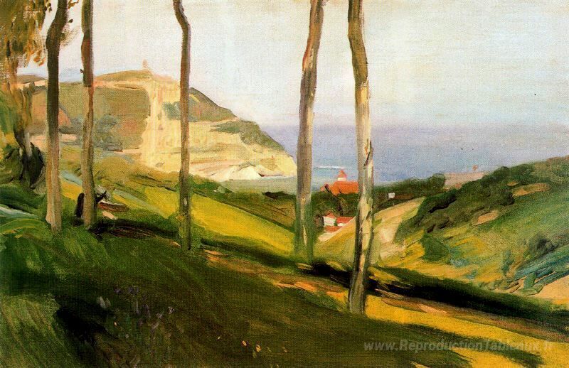 Nous vous proposons une reproduction artisanale sur toile du célèbre tableau 'Paysage à San Sebastian' de Joaquín Sorolla, provenant du Musée de la Reproduction.