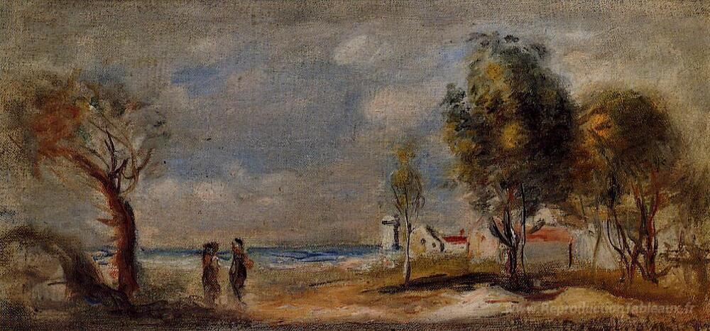 Nous vous proposons une reproduction artisanale sur toile du célèbre tableau 'Paysage (après corot)' de Pierre-Auguste Renoir, provenant du Musée de la Reproduction.