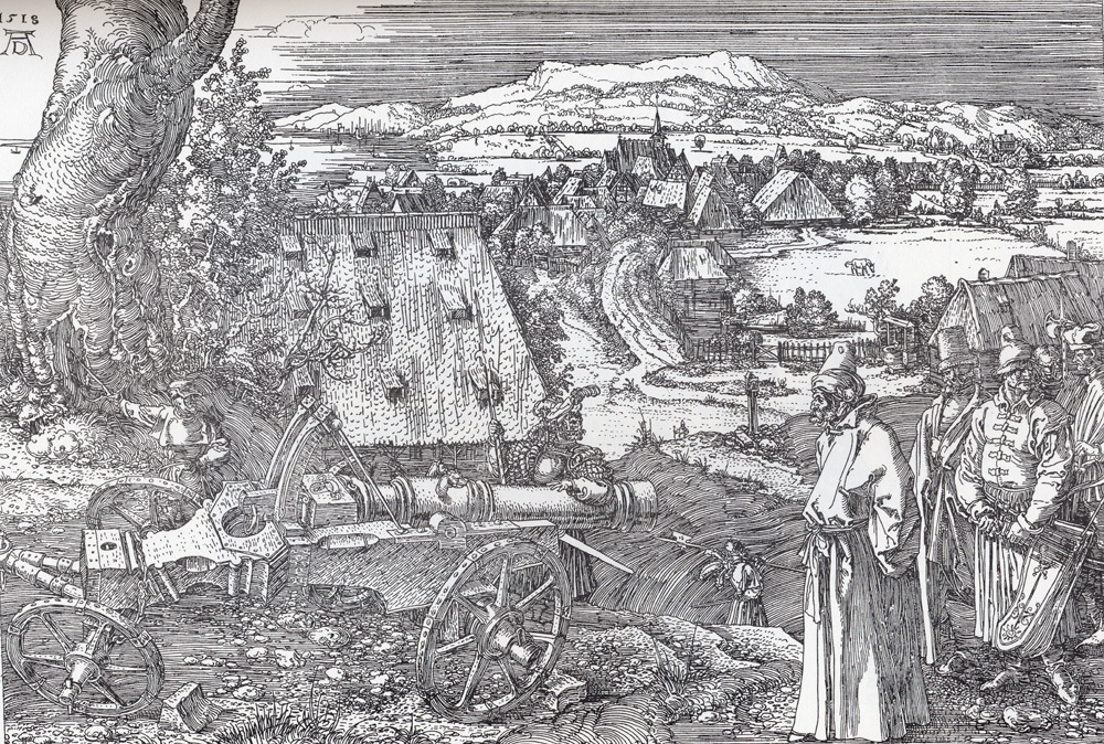Nous vous proposons une reproduction artisanale sur toile du célèbre tableau 'Paysage avec canon' de Albrecht Durer, provenant du Musée de la Reproduction.