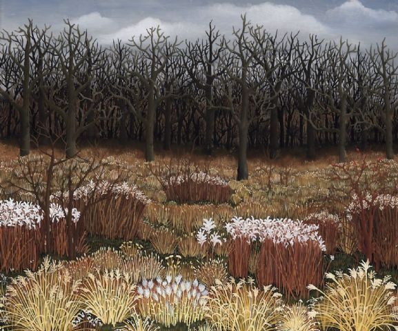 Nous vous proposons une reproduction artisanale sur toile du célèbre tableau 'Paysage avec de l'herbe' de Ivan Generalic, provenant du Musée de la Reproduction.