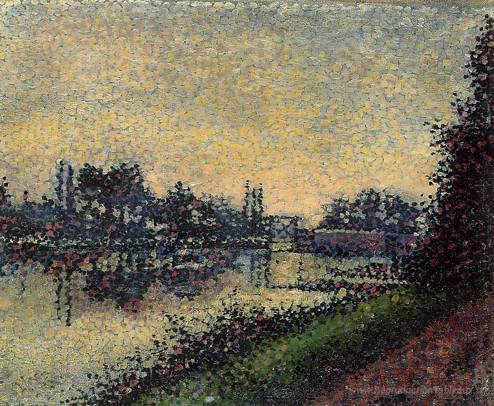 Nous vous proposons une reproduction artisanale sur toile du célèbre tableau 'Paysage avec verrouillage' de Albert Dubois-Pillet, provenant du Musée de la Reproduction.