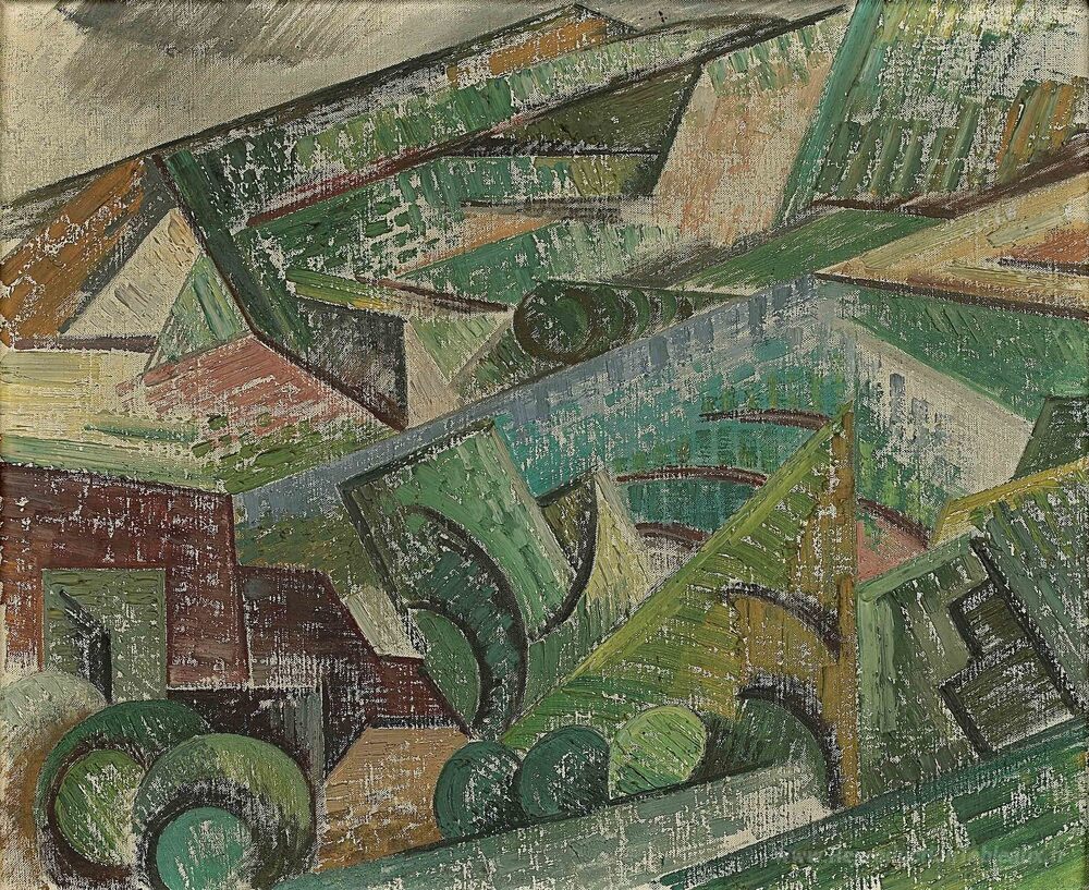 Nous vous proposons une reproduction artisanale sur toile du célèbre tableau 'Paysage cubiste' de Auguste Herbin, provenant du Musée de la Reproduction.