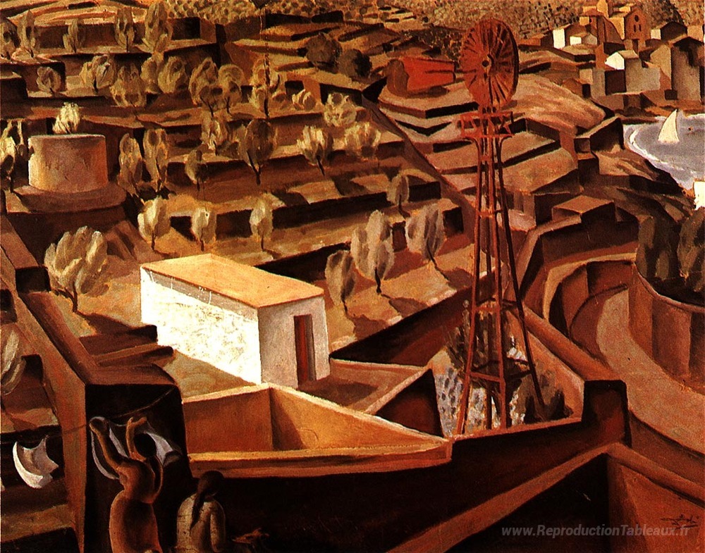 Nous vous proposons une reproduction artisanale sur toile du célèbre tableau 'Paysage de cadaques' de Salvador Dali, provenant du Musée de la Reproduction.