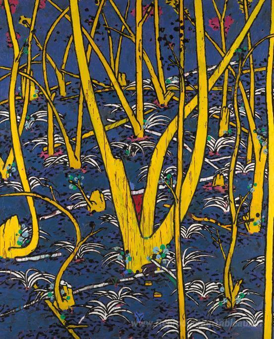 Nous vous proposons une reproduction artisanale sur toile du célèbre tableau 'Paysage de Cottlesbridge' de Dale Hickey, provenant du Musée de la Reproduction.