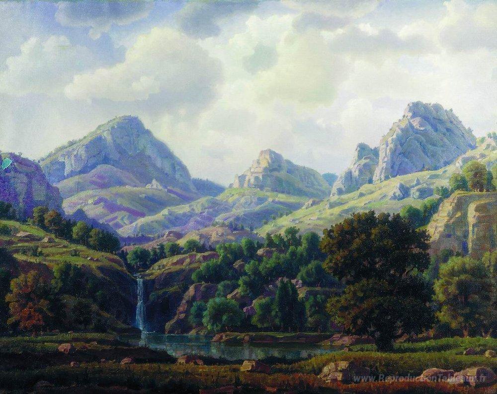 Nous vous proposons une reproduction artisanale sur toile du célèbre tableau 'Paysage des montagnes' de Konstantin Bogaevsky, provenant du Musée de la Reproduction.