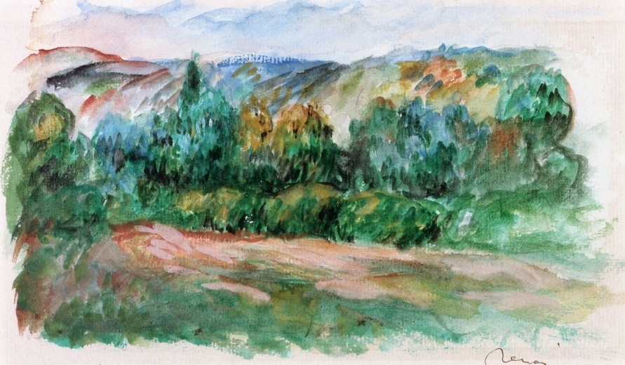 Nous vous proposons une reproduction artisanale sur toile du célèbre tableau 'Paysage d'Essoyes' de Pierre-Auguste Renoir, provenant du Musée de la Reproduction.