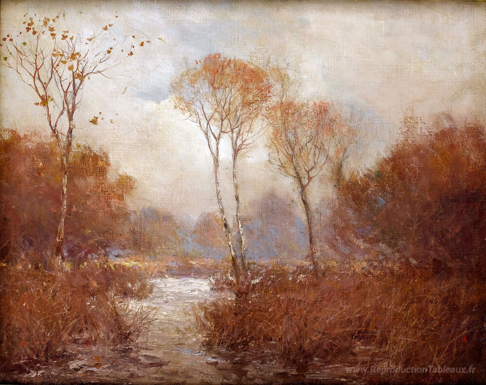 Nous vous proposons une reproduction artisanale sur toile du célèbre tableau 'Paysage d'octobre' de Robert Julian Onderdonk, provenant du Musée de la Reproduction.