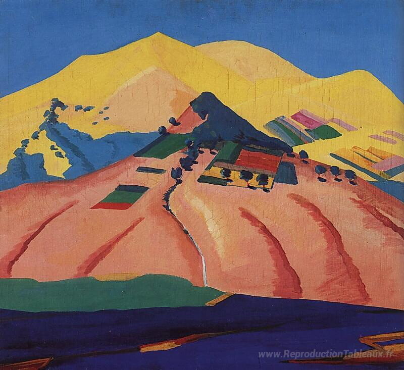 Nous vous proposons une reproduction artisanale sur toile du célèbre tableau 'Paysage ensoleillé' de Martiros Saryan, provenant du Musée de la Reproduction.