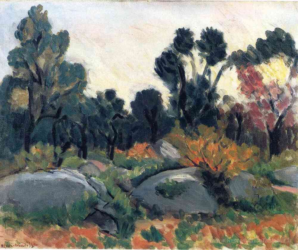 Nous vous proposons une reproduction artisanale sur toile du célèbre tableau 'Paysage' de Henri Matisse, provenant du Musée de la Reproduction.