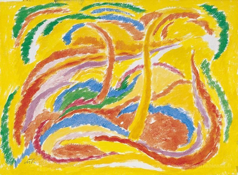 Nous vous proposons une reproduction artisanale sur toile du célèbre tableau 'Paysage' de Janos Mattis-Teutsch, provenant du Musée de la Reproduction.