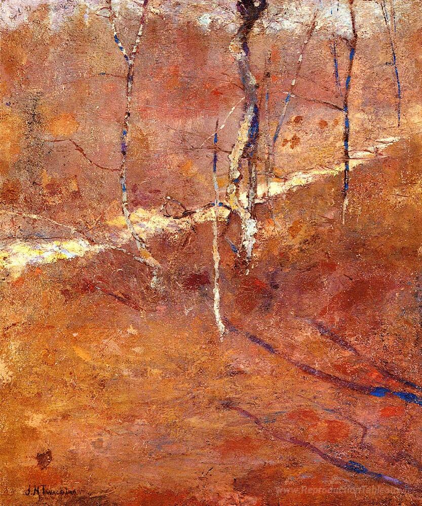 Nous vous proposons une reproduction artisanale sur toile du célèbre tableau 'Paysage' de John Henry Twachtman, provenant du Musée de la Reproduction.