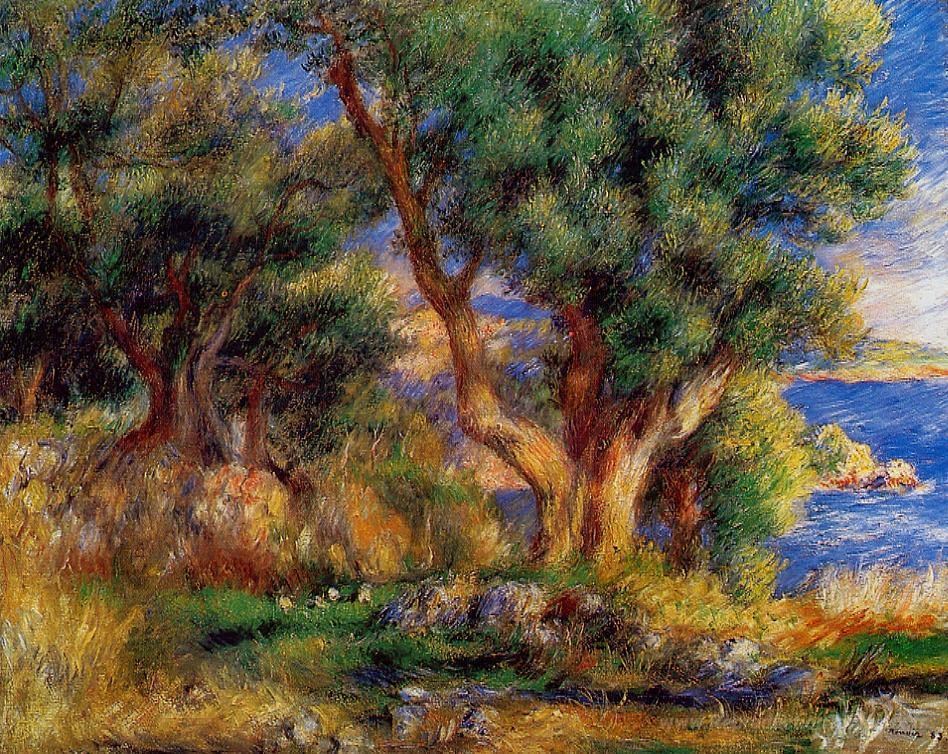 Nous vous proposons une reproduction artisanale sur toile du célèbre tableau 'Paysage près de Manton' de Pierre-Auguste Renoir, provenant du Musée de la Reproduction.