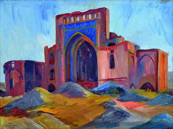Nous vous proposons une reproduction artisanale sur toile du célèbre tableau 'Paysage. Turkménistan.' de Martiros Saryan, provenant du Musée de la Reproduction.