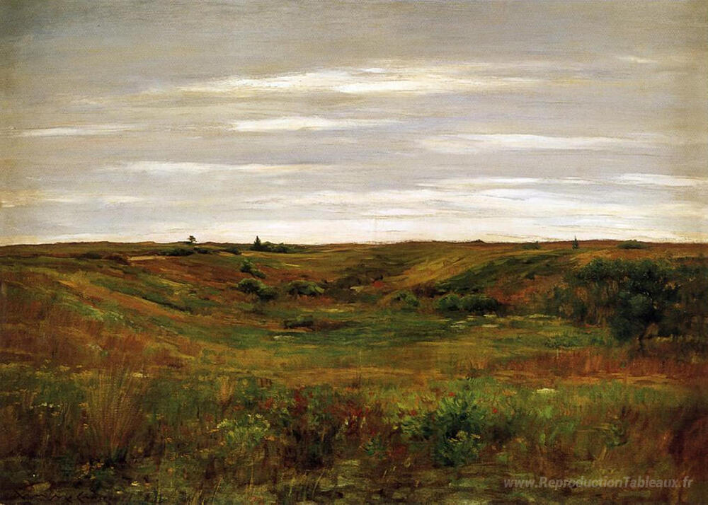 Nous vous proposons une reproduction artisanale sur toile du célèbre tableau 'Paysage - un vale Shinnecock' de William Merritt Chase, provenant du Musée de la Reproduction.