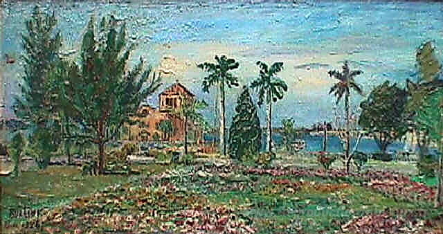 Nous vous proposons une reproduction artisanale sur toile du célèbre tableau 'Paysage vert' de David Burliuk, provenant du Musée de la Reproduction.