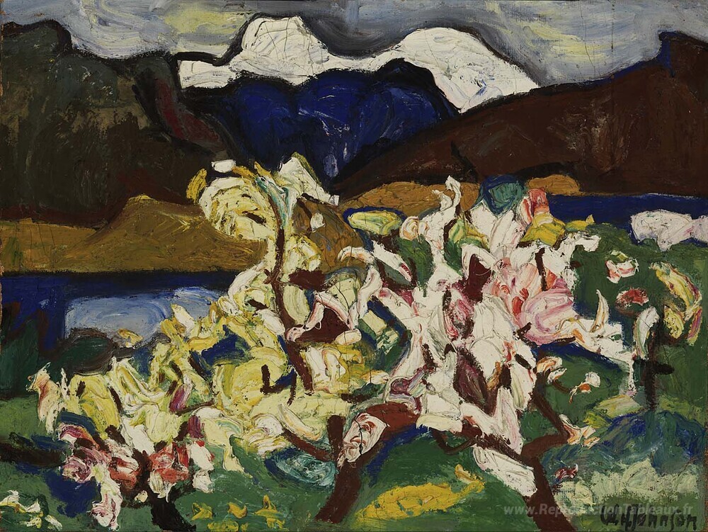 Nous vous proposons une reproduction artisanale sur toile du célèbre tableau 'Picchi della neve e fiori' de William H. Johnson, provenant du Musée de la Reproduction.