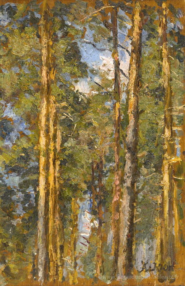 Nous vous proposons une reproduction artisanale sur toile du célèbre tableau 'Pins' de Konstantin Yuon, provenant du Musée de la Reproduction.
