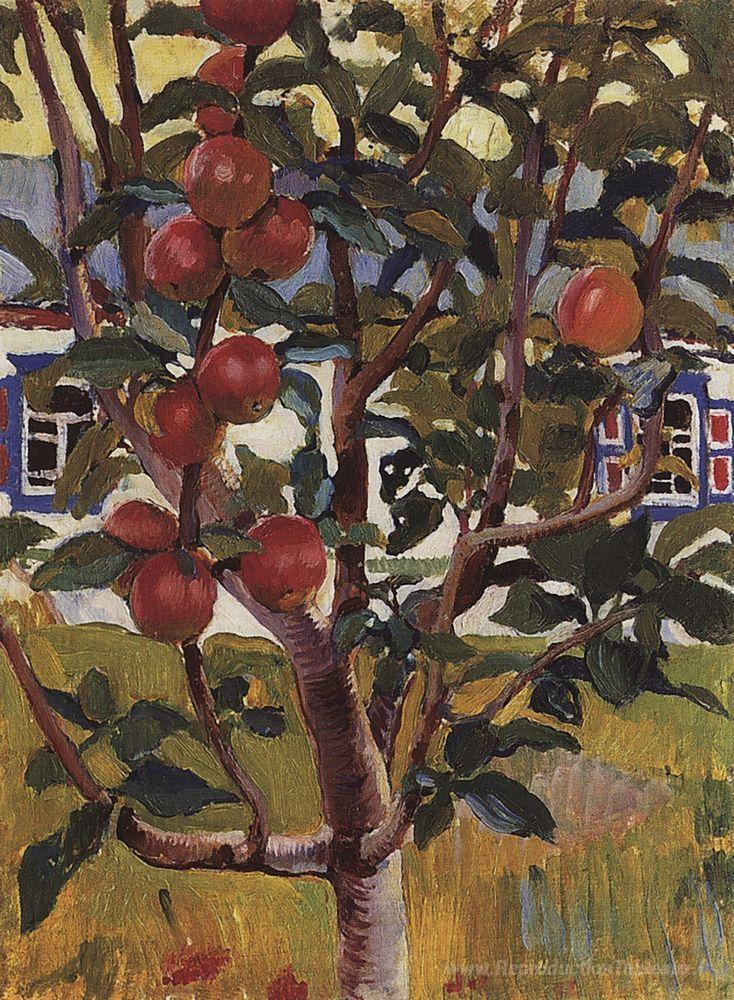 Nous vous proposons une reproduction artisanale sur toile du célèbre tableau 'pommier' de Zinaida Serebriakova, provenant du Musée de la Reproduction.