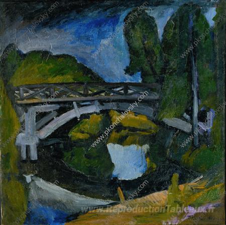 Nous vous proposons une reproduction artisanale sur toile du célèbre tableau 'Pont à Abramtsevo' de Pyotr Konchalovsky, provenant du Musée de la Reproduction.