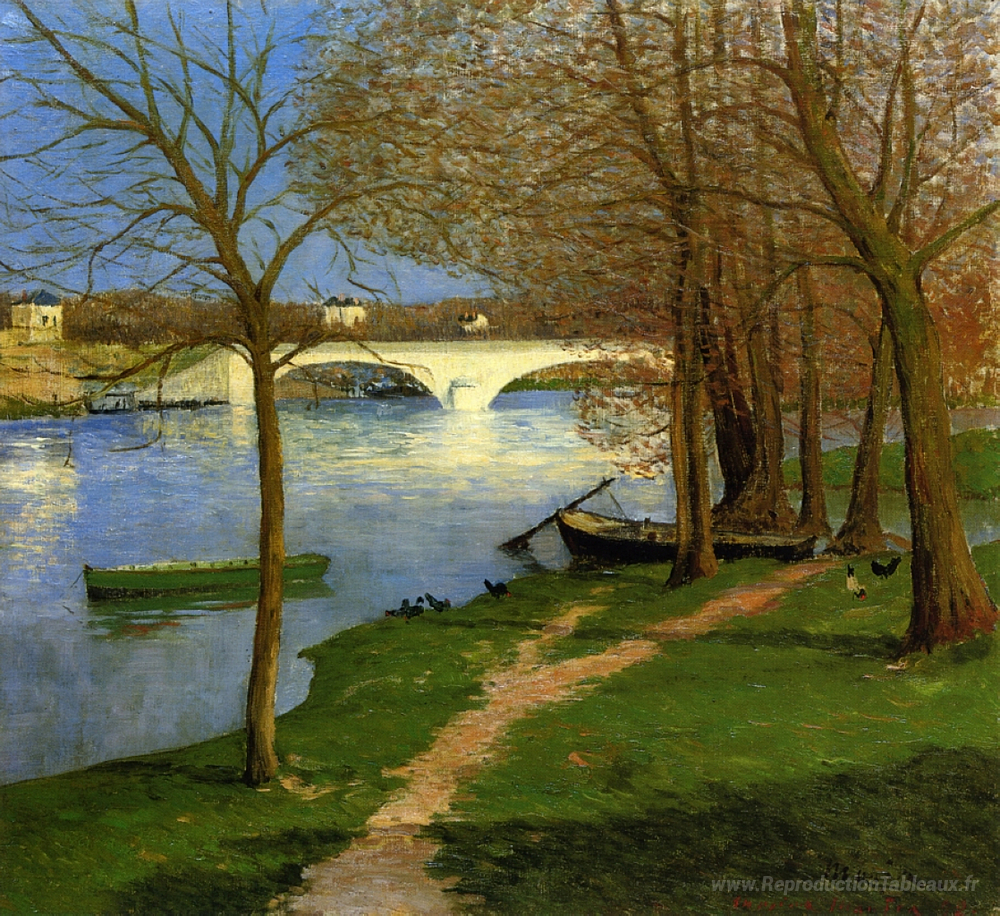 Nous vous proposons une reproduction artisanale sur toile du célèbre tableau 'Pont sur la Loire' de Maxime Maufra, provenant du Musée de la Reproduction.