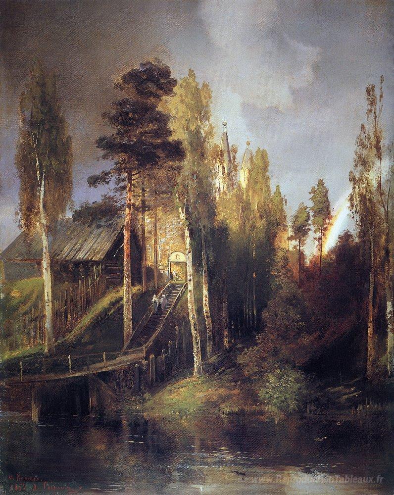 Nous vous proposons une reproduction artisanale sur toile du célèbre tableau 'Portes du monastère' de Aleksey Savrasov, provenant du Musée de la Reproduction.