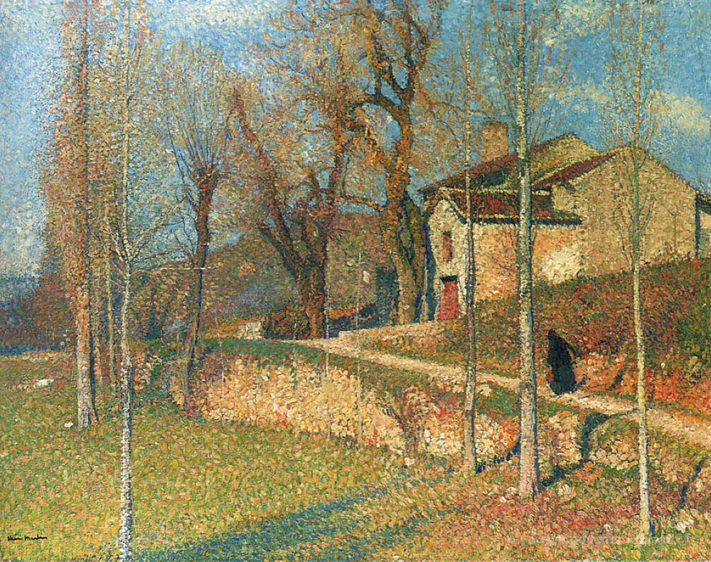 Nous vous proposons une reproduction artisanale sur toile du célèbre tableau 'Près de Colliure à Twilight' de Henri Martin, provenant du Musée de la Reproduction.