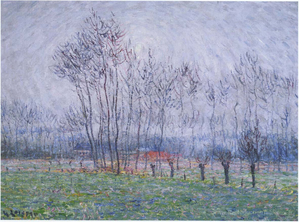 Nous vous proposons une reproduction artisanale sur toile du célèbre tableau 'Près de Saint Cyr' de Gustave Loiseau, provenant du Musée de la Reproduction.