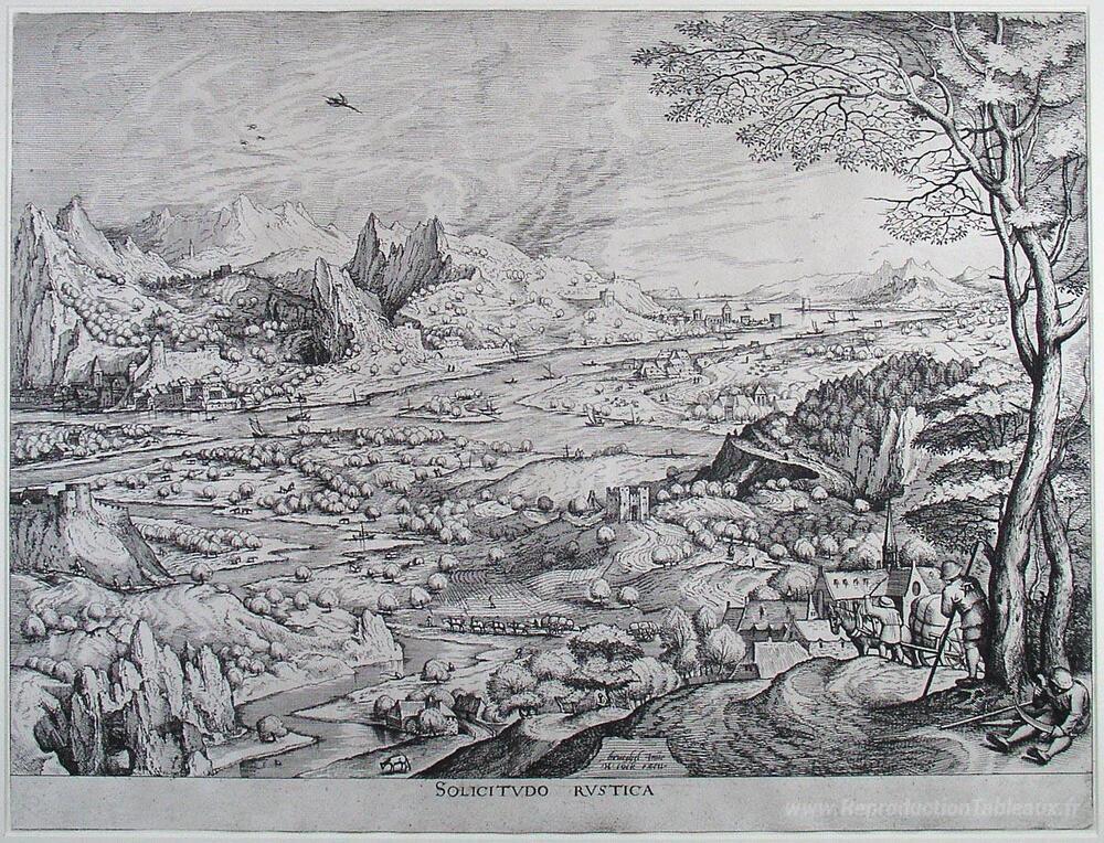 Nous vous proposons une reproduction artisanale sur toile du célèbre tableau 'Préoccupations de pays' de Pieter Bruegel the Elder, provenant du Musée de la Reproduction.