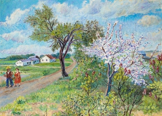 Nous vous proposons une reproduction artisanale sur toile du célèbre tableau 'Printemps à Long Island' de David Burliuk, provenant du Musée de la Reproduction.